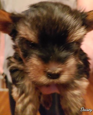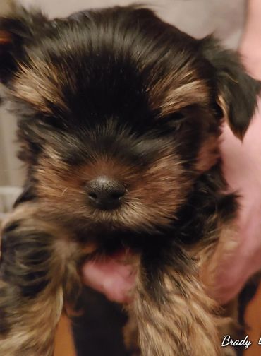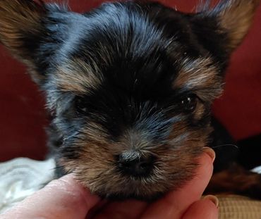 I'm a 5.5 pound Blue and Gold Yorkie. I'm very possessive of my family. I love belly rubs (who doesn't). I also like to sleep up on top of my mom and dad side when they are sleeping on their side.